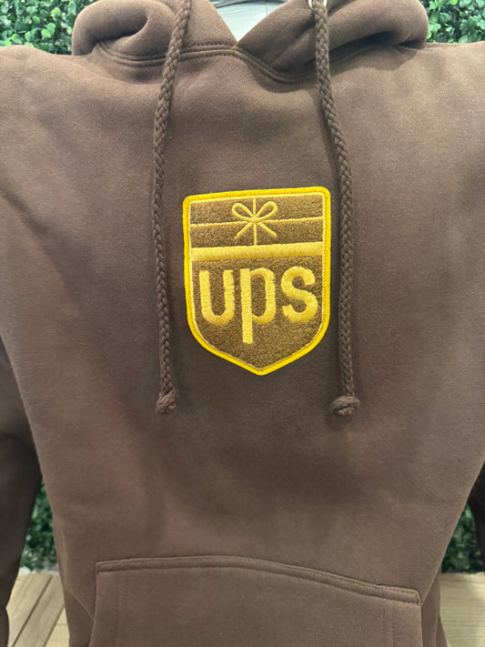 Retro UPS Logo Chenille Patch Logo Hoodie - Brown